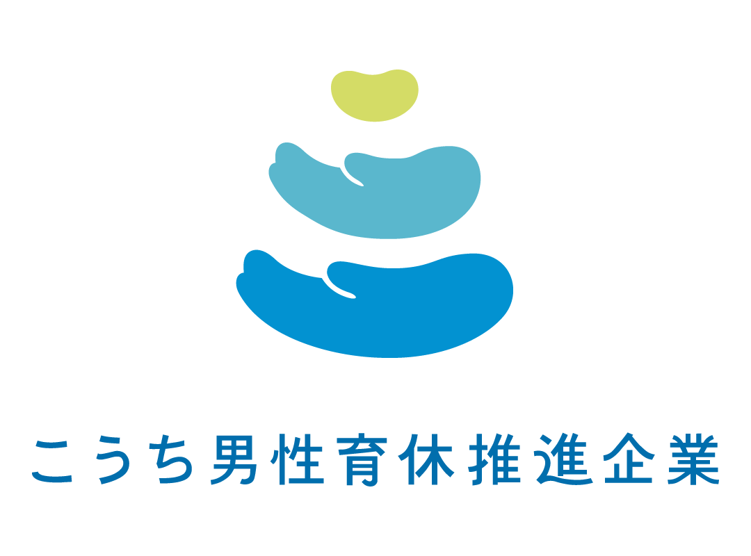 高知の「こ」をモチーフにした二つの手と、その上に小さな光が浮かぶデザインです。小さな光=子を表し、その下の手は親・男性を表し、またさらに下から支える一回り大きな手は企業を表しています。子どもを育てる親を支え、寄り添い、助けていける企業が高知にもっと増えていき、心地よく子育てができる県を目指していく、というメッセージを込めています。