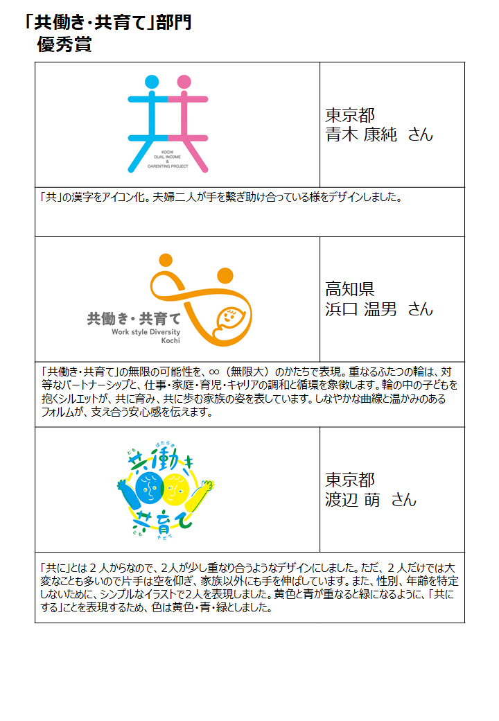 なお、大賞に選ばれました2作品は、「男性育休推進企業」に登録いただいた企業・団体の皆さまにご活用いただくなど、高知県の共働き・共育てのPRに活用していきます。