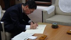 愛媛・高知交流会議を久万高原町で開催しました。愛媛県の中村知事と共に、旧中学校を利用したゲストハウスや林業のデジタル化に関する取組を視察した後、意見交換を行いました。今後も両県が連携して、南海トラフ地震対策やJR予土線の利活用等に取り組んでいきます。