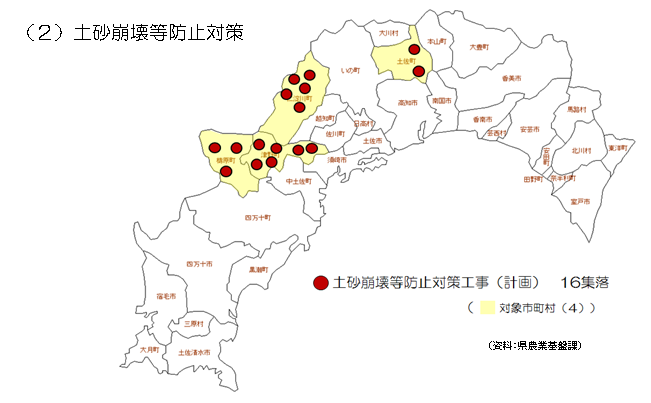 - また、「南海トラフ巨大地震」では、山間地域においても「震度6強」以上の強い揺れが想定されており、地震時の土砂災害の発生を懸念