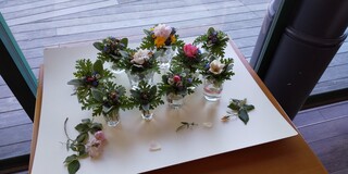 庭師が集まり、庭の草花を使った小さな花束「タッジーマッジー」づくりに挑戦しました。来年度以降にはなりますが、体験プログラムの一環として、提供していきたいと考えています。