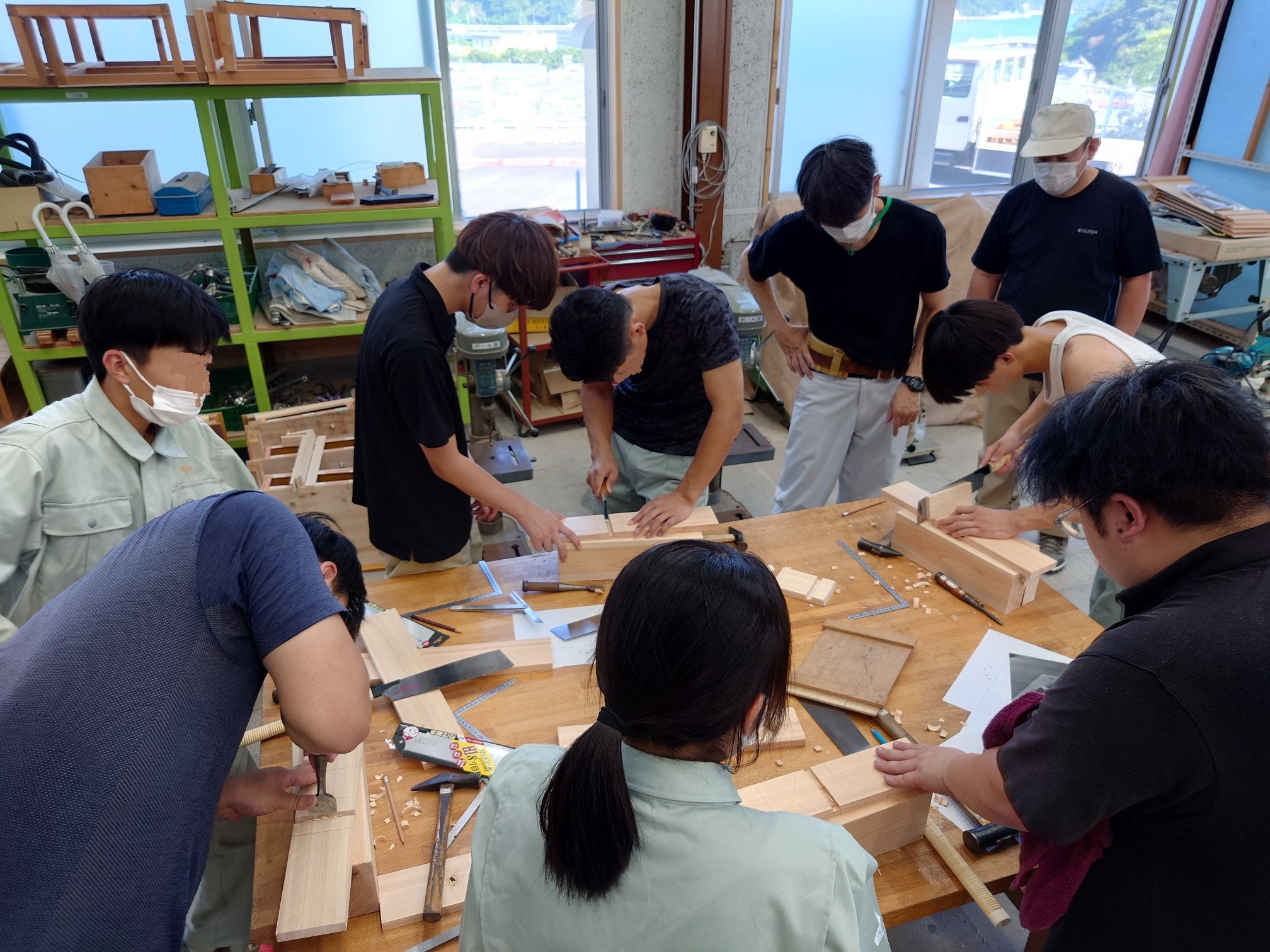 9月15日(金)、須崎総合高等学校で中村高等技術学校木造建築科、左官エクステリア科指導員及び訓練生による出前授業を行いました。