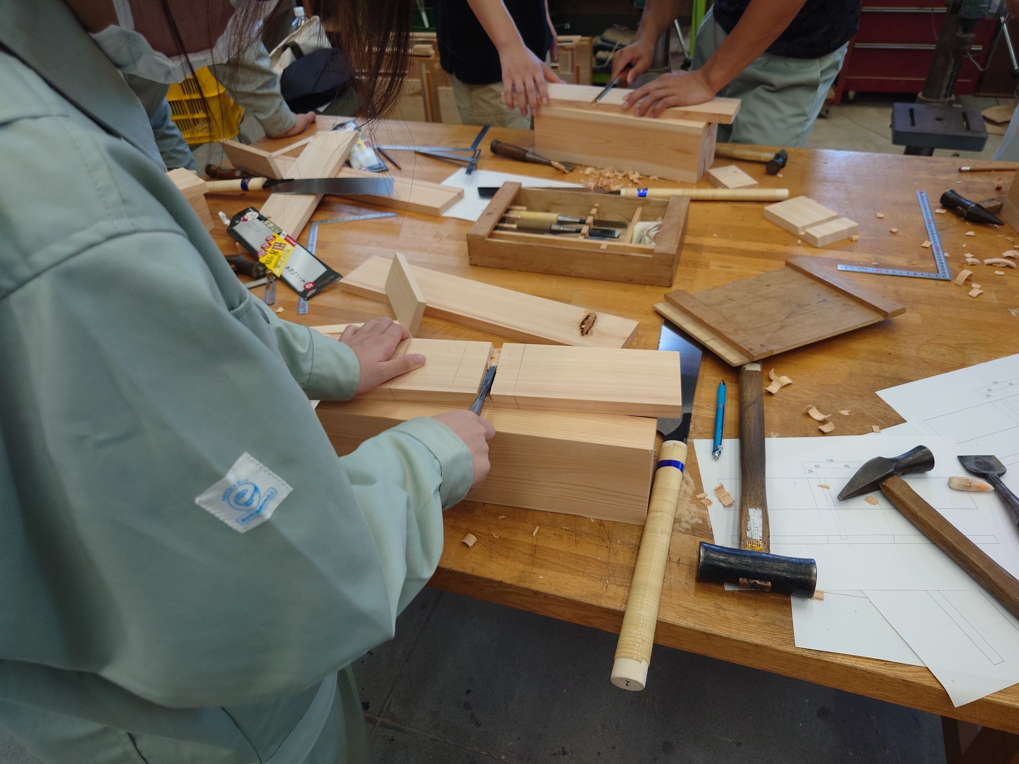 はじめは手工具の扱い方や作業姿勢、危険動作などについて生徒の皆さんにご説明し、それから課題作成に移りました。