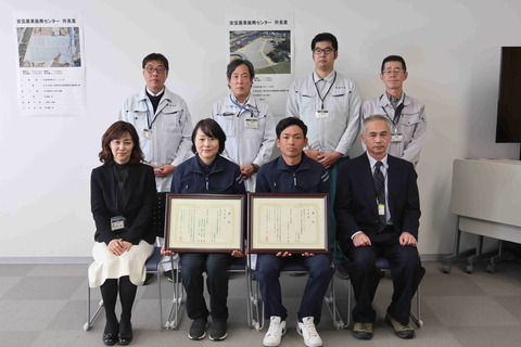 以上2社が、田中安芸農業振興センター所長から賞状を授与されました。