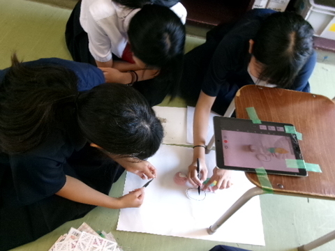 <アニメの描き方を学ぶ様子>