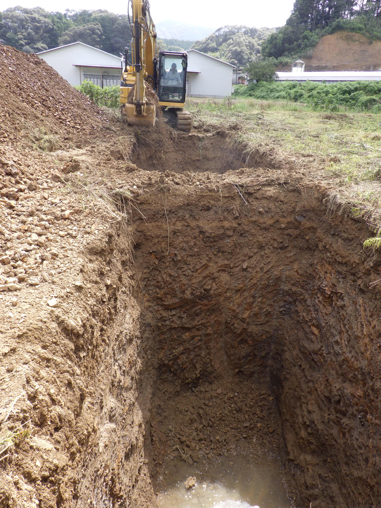・令和7年9月26日、中土佐町、家畜保健衛生所等が参加し、農場における消毒、埋却候補地の試掘を実施しました。