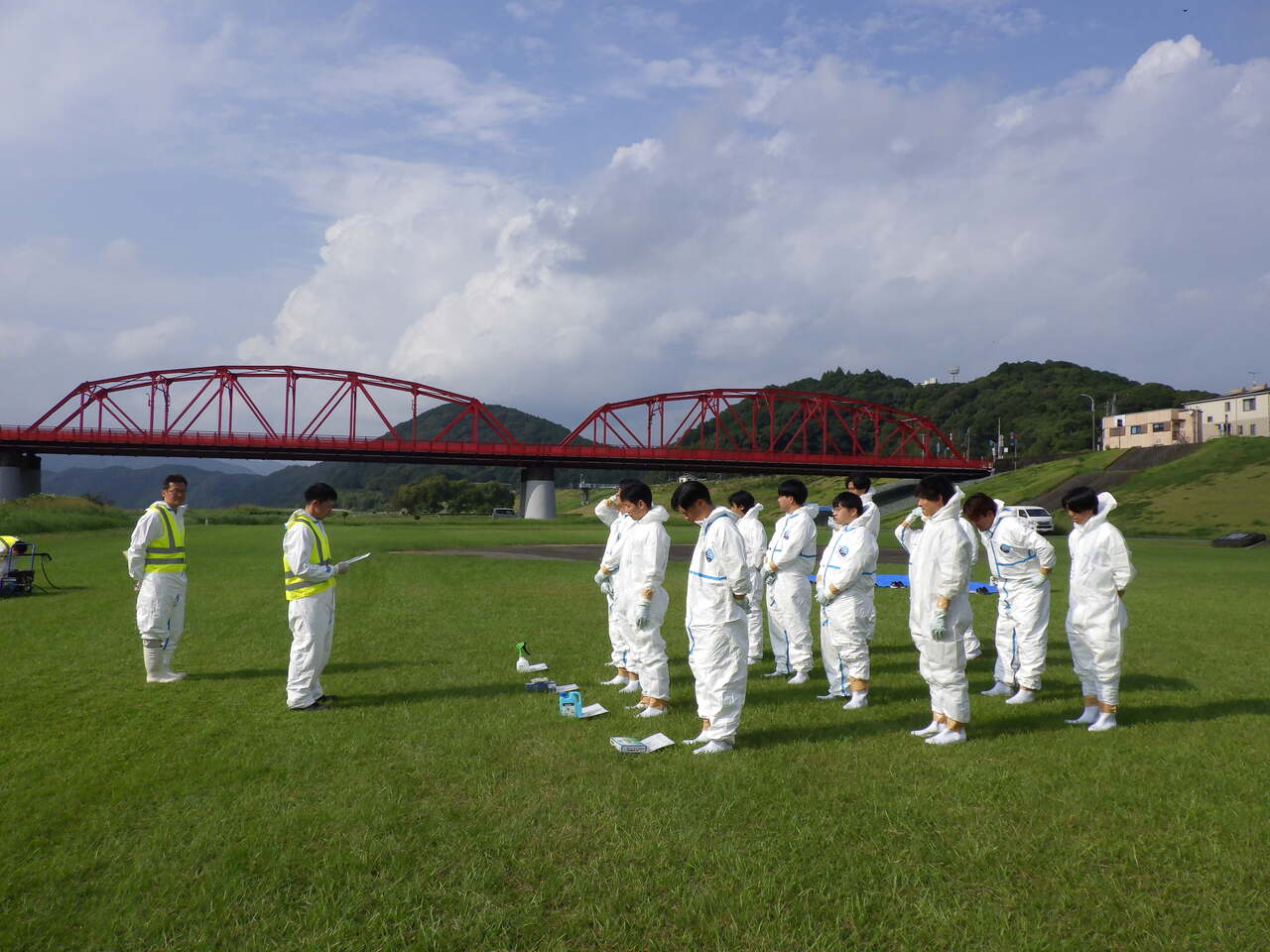 ・令和7年10月15日、県庁職員25人を動員し、幡多福祉保健所で健康チェック及び防護服の着脱の訓練を実施しました。また、四万十市渡川にて、車両消毒の訓練を実施しました。