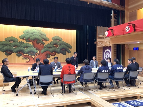 弁天座の視察をさせていただくとともに、「廻り舞台」や歌舞伎衣装を羽織るなど地域の方が造成された観光プランを体験させていただきました。 本格的な歌舞伎の上演から、地域の方々への活動の場の提供など、様々な用途で活用され、地域の皆さんにとって身近な文化施設であることがよく分かりました。 |