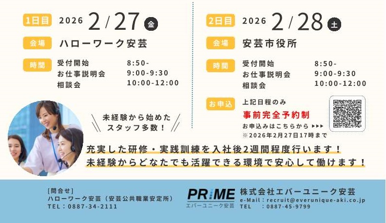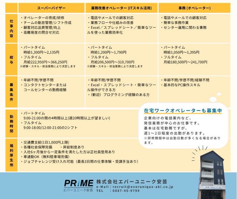 📞0887ー45ー9799/ ✉recruit@everunique-aki.co.jp