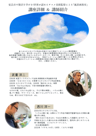 スタジオジブリの有名作品を手掛けられたアニメーション美術監督である武重洋二さん、西川洋一さんが講師を務める、背景美術を学べる体験イベントが高知市と安芸市で開催されます!