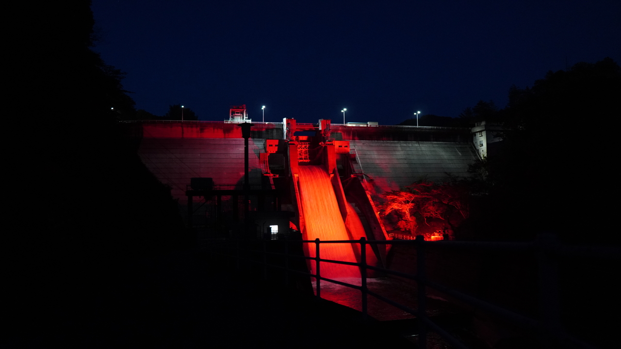 鏡ダムでは毎年啓発やイベントなどに合わせてライトアップを実施しています。