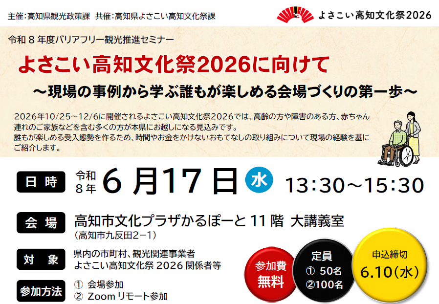 対 象 :県内の市町村、観光関連事業者、よさこい高知文化祭2026関係者等