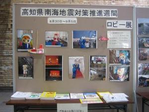 南海地震に関するパネルや、中国・四川大地震の写真を展示した地震防災の啓発コーナーを設置します。併せて、南海地震対策推進週間に家庭の備えをチェックしていただくパンフレットなどの啓発冊子の配布を行います。