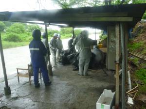 平成25年5月29日 伊尾木川河川敷地に、河川法第24条の許可を受けずに設置されている所有者不明の不法占用工作物等を河川法第75条第3項の規定に基づいて、簡易代執行により除却しました。