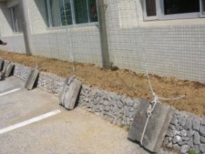 | 土壌改良の様子 | 側溝の蓋をアンカーとして再利用 |