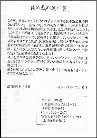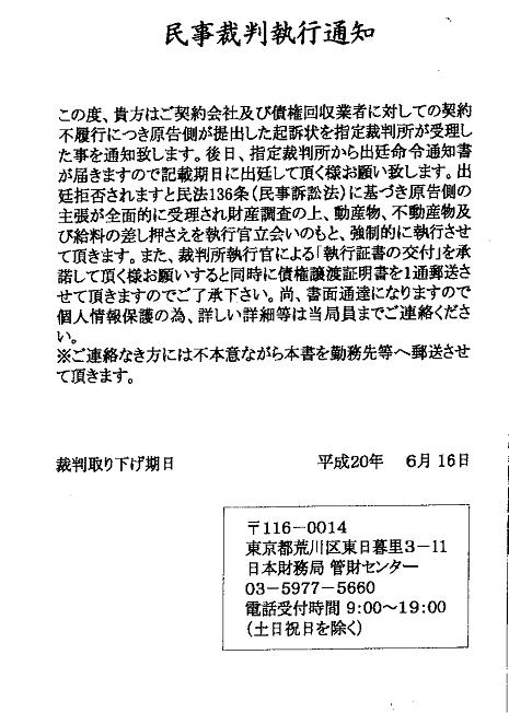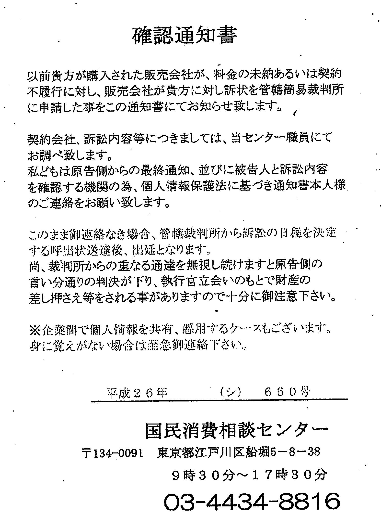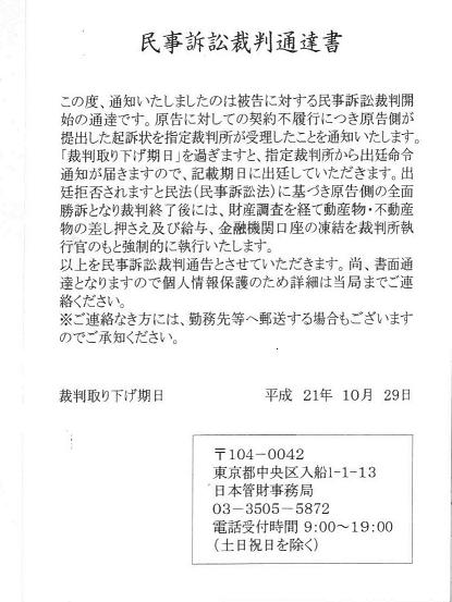 | 全国消費者相談窓口 | 日本管財事務局【実物例】 |