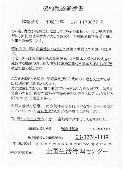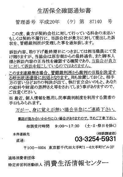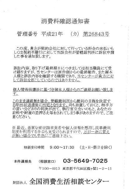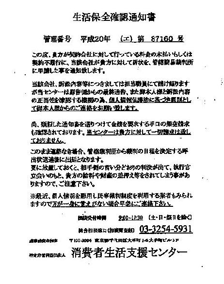 | 全国消費生活相談センター【実物例】 | 日本財政管理事務局 |
