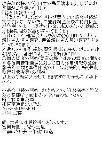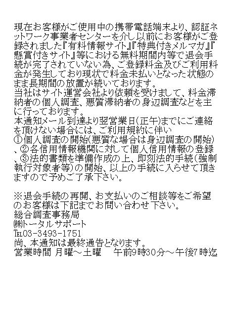 架空請求ですので記載されている電話番号には絶対に電話しないでください