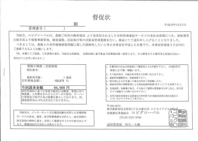 | ユビグローバル | 消費生活情報センター【実物例】 |
