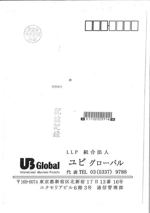 【業者名:ユビグローバル(督促状)】
