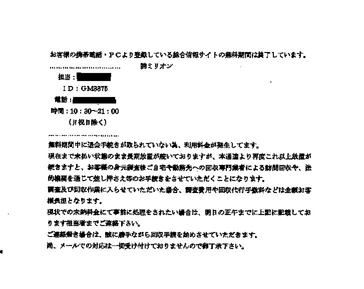 架空請求ですので、文中に記載されている電話番号には絶対に電話しないようにしてください!