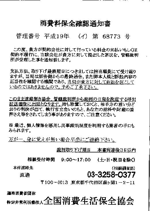 【業者名:全国消費生活保全協会】