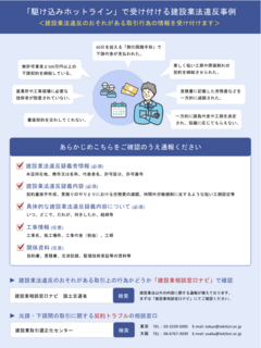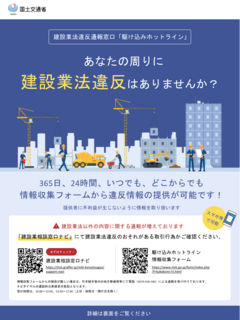 建設業法違反に関する情報提供窓口として、国土交通省では、駆け込みホットラインの運用をしています。
