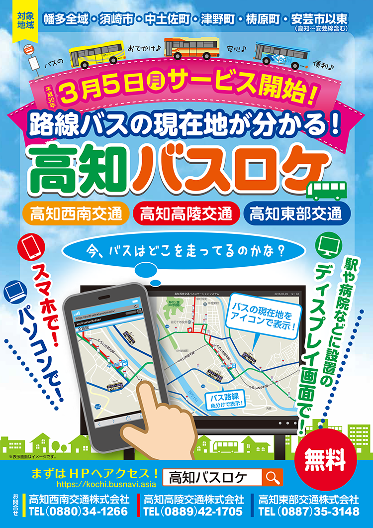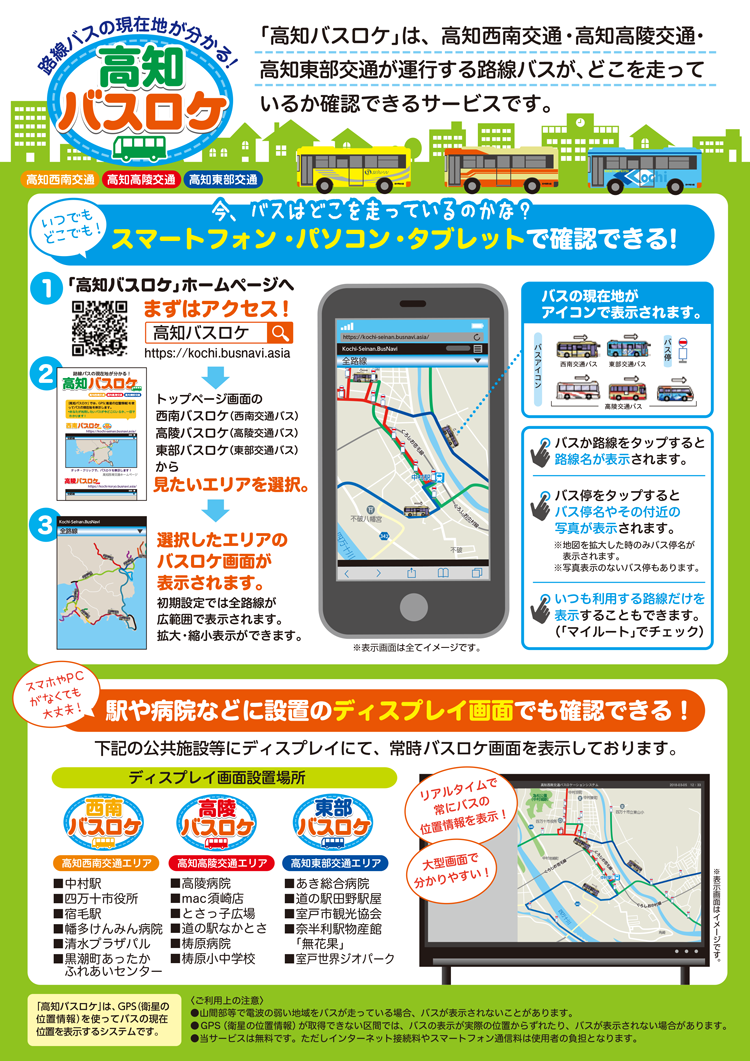 - 「高知バスロケ」ホームページへアクセス → https://kochi.busnavi.asia