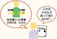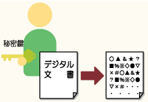 1.Aさんが自分だけが持つ秘密鍵でデジタル文書を暗号化します。 |