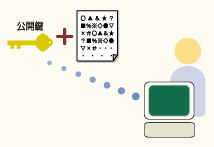 2.それに公開鍵を添付してBさんに送信します。 |