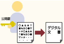これらのインターネット上の脅威に対抗できる機能を持ったのが公開鍵暗号方式を活用した「電子署名」です。電子署名がされているデジタル文書は、記名・押印や印鑑証明書が添付された書面と同じように申請者の意思に基づくものであるとされています(電子署名及び認証業務に関する法律第3条)。