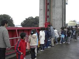 平成21年3月3日(火曜日)、横浜小学校の5年生約90名が、横浜排水機場の見学を行いました。あいにくの雨模様でしたが、巨大な施設にみんな興味津々でした。