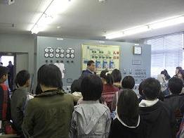 まず、スライドを使って、地震と津波の仕組みについて学習し、操作室で排水機場の仕組み・働きについて説明をうけました。
