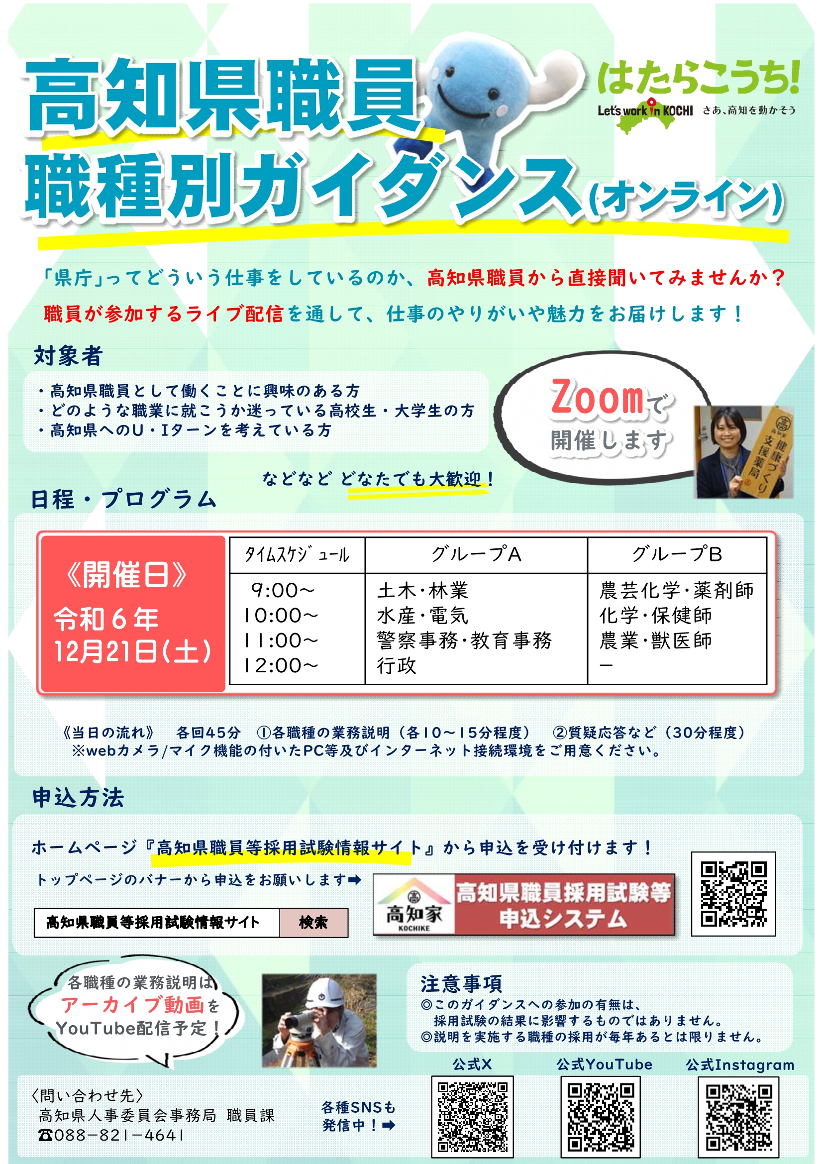 高知県職員職種別ガイダンス(オンライン)の申込を開始しました -