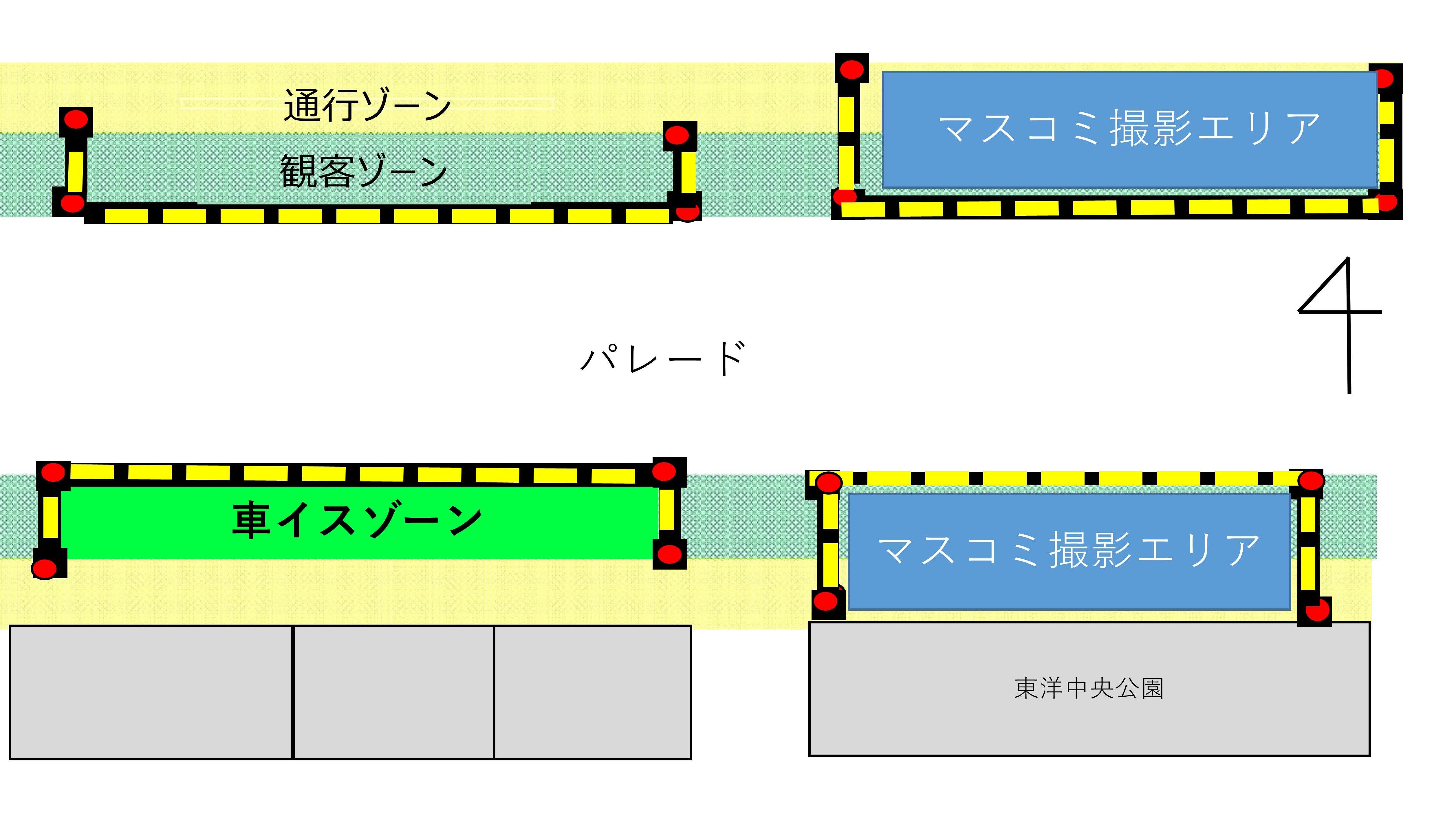 ①高知県スポーツ顕彰授与式 開催場所:大丸東館前 開催時間:13:15~13:25 参加者:藤川球児監督、石井大智投手 ②高知県阪神タイガース優勝記念パレード 開催場所:高知大丸東館→壱番街商店街・帯屋町一丁目商店街・帯屋町二丁目商店街→ひろめ市場 開催時間:13:26~14:00 阪神タイガース側の参加者 ・監督:藤川球児 ・選手:石井大智、ラファエル・ドリス、嶋村 麟士朗、前川 右京、工藤 泰成、門別 啓人、 早川 太貴、中川 勇斗、髙寺 望夢 ・OB:江本孟紀、中西清起 ※参加者は、急遽変更になる場合があります。 手旗配布:当日パレード開始の1時間前(12時15分頃)から、パレードの観覧ゾーンにいる方に手旗を配布します。 手旗を振って、チームの皆さまと一緒に忘れられない「特別な時間」にしましょう。 ※手旗の数には限りがありますので、ご了承ください。 車イスゾーンの設置 中央公園北口の西側に車イスゾーンを1区画設けます。 ※スペースに限りがありますので、ご了承ください。 交通規制について パレード開催に伴い、12:40~14:00の間で交通規制を行います。 ※詳細は、交通規制についてをご覧ください。