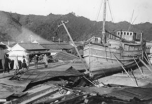 - 陸へ押し流された漁船。昭和南海地震で