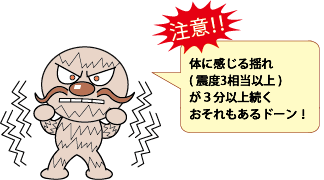体に感じる揺れ(震度3相当以上)が続く時間が分かります。