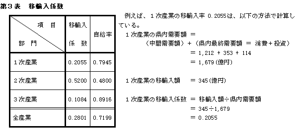 従って、需要の波及過程で、県内生産に波及する部分と移輸入に波及する部分とは、区別しておくことが必要であり、このために必要となるのが移輸入係数である。