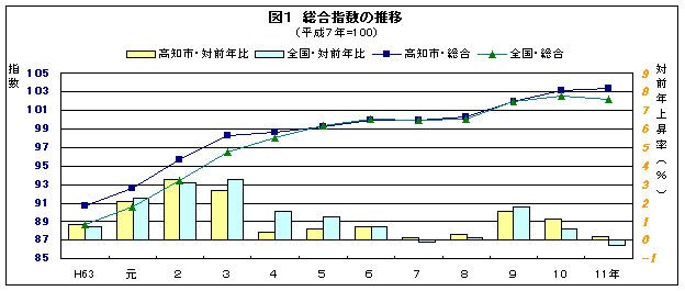 | 1 平成11年平均高知市消費者物価指数の概況 |