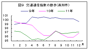 | (7)交通通信 指数 96.5 前年比(−)0.9% |